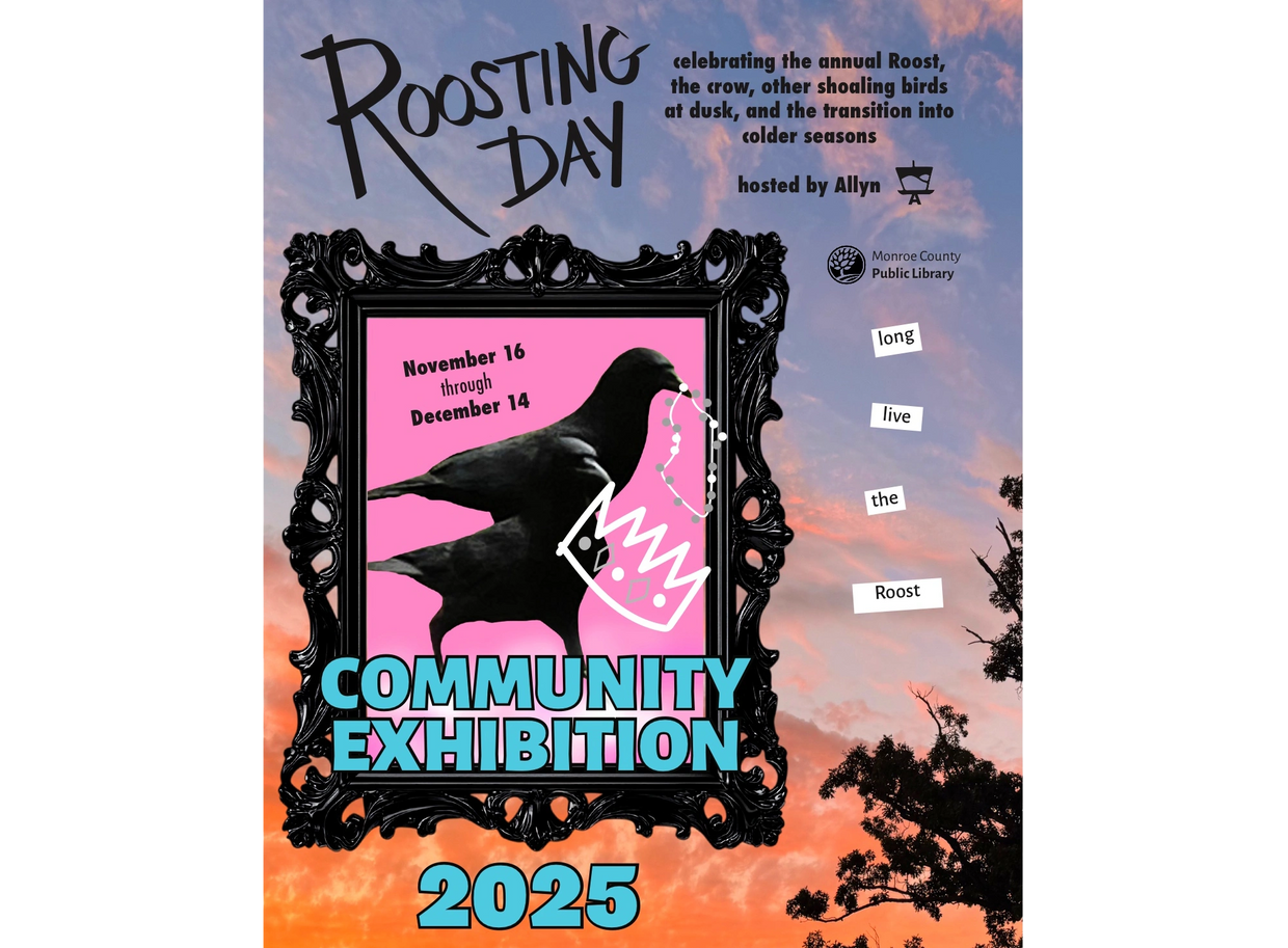 This inaugural Roosting Day Community Exhibition celebrates the Roost, the crow, other shoaling birds at dusk, and the transition into colder seasons. Other interpretations of the theme “community” were also accepted. I am thrilled by the variety of thoughtful works we received in response to this first call. If you missed the submission deadline this year, keep an eye out for the next call in September/October of ‘26!